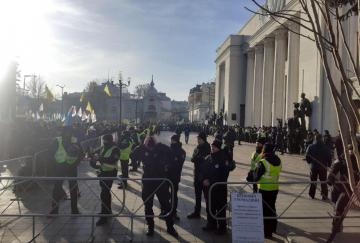 Под Радой снова собираются митингующиеВозле здания Верховной Рады собрались около 300 митингующих, которые выступают против введения рынка земли