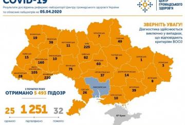 В Украине уже подтверждено 1251 случай COVID-19По данным ЦОЗ, по состоянию на 10:00 5 апреля в Украине 1251 лабораторно подтвержденный случай COVID-19, из них 32 летальных 25 пациентов выздоровели. За сутки было зафиксировано 156 новых случаев. Об этом говорится в сообщении Минздрава.